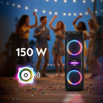 Pregătește-te pentru o doză serioasă de energie! Cu acest difuzor robust pentru party de 240 W, vei anima orice petrecere, sărbătoare sau întâlnire cu prietenii. Datorită tehnologiei Bluetooth 5.0 moderne, poți să conectezi cu ușurință telefonul, tableta sau laptopul și să redai playlisturile preferate în doar câteva secunde. Efectele cu LED-uri colorate creează, de asemenea, atmosfera potrivită, indiferent dacă redai conținut în sufragerie sau în grădină. Muzică, lumini, emoții – totul într-un singur dispozitiv.