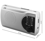 Radio, tuner analogic FM/AM, mufă jack pentru căști, alimentare cu c.a. sau cu baterii, argintiu