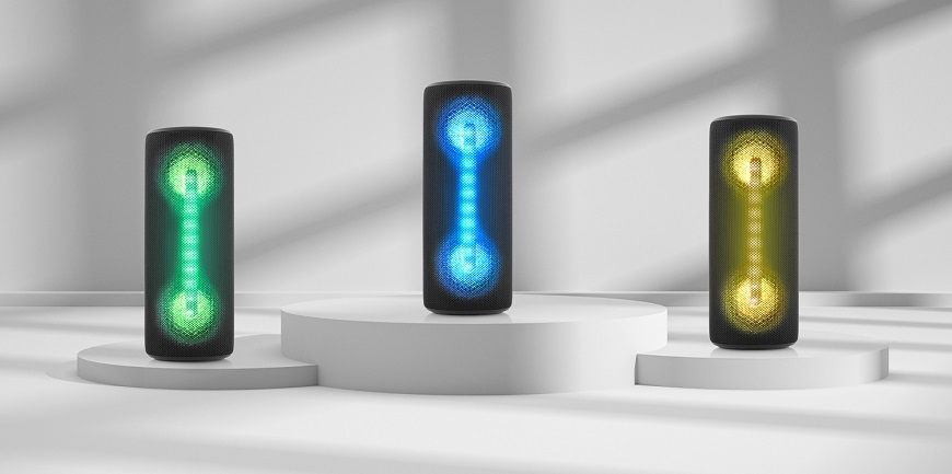 Další příjemnou vlastností reproduktoru je dotykové ovládání na boku přístroje a také světelné LED efekty.